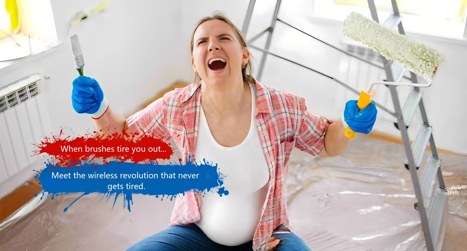 Cordless paint gun with 2 batteries, suitable for painting houses, furniture and interior home furnishings.