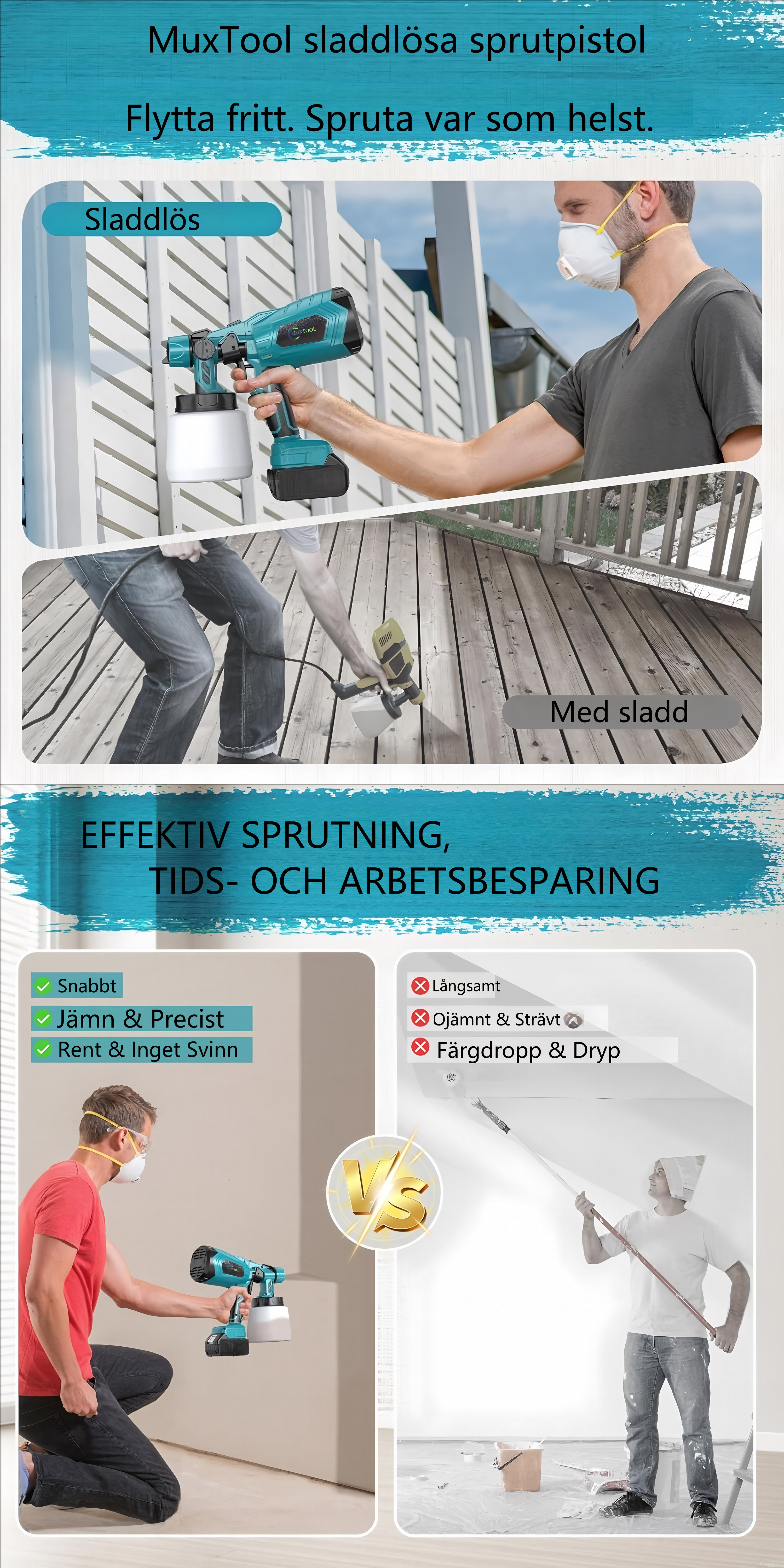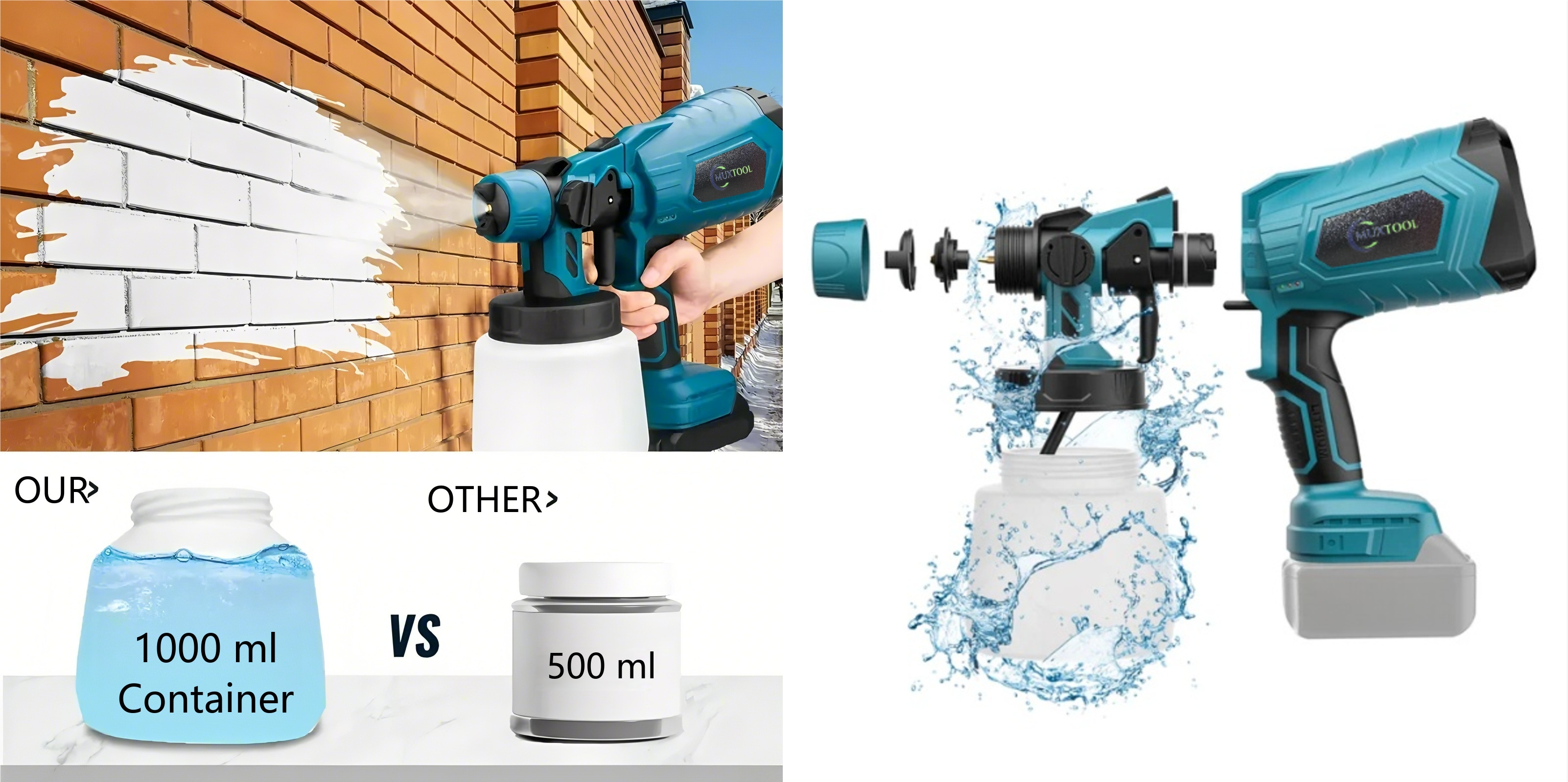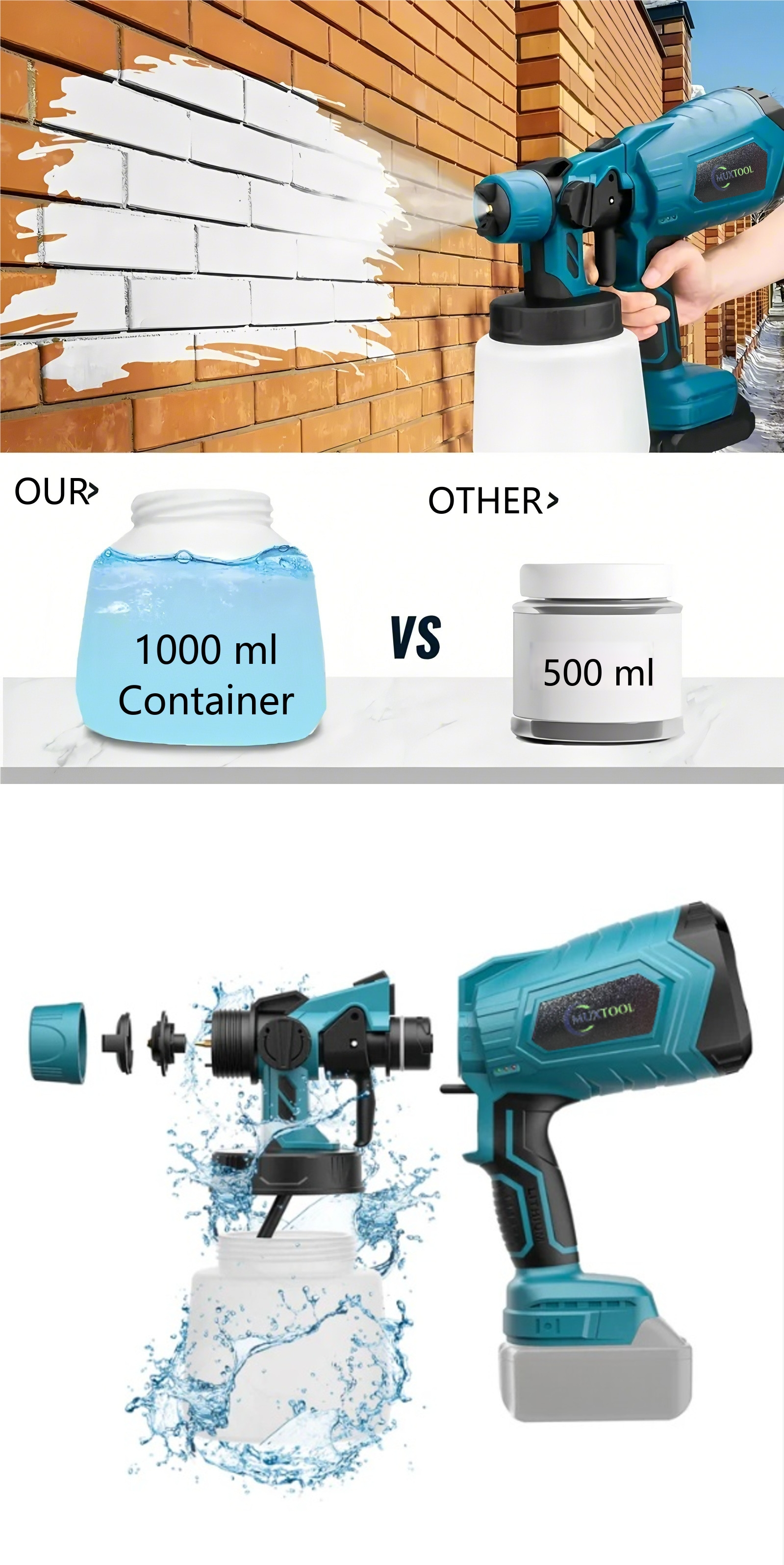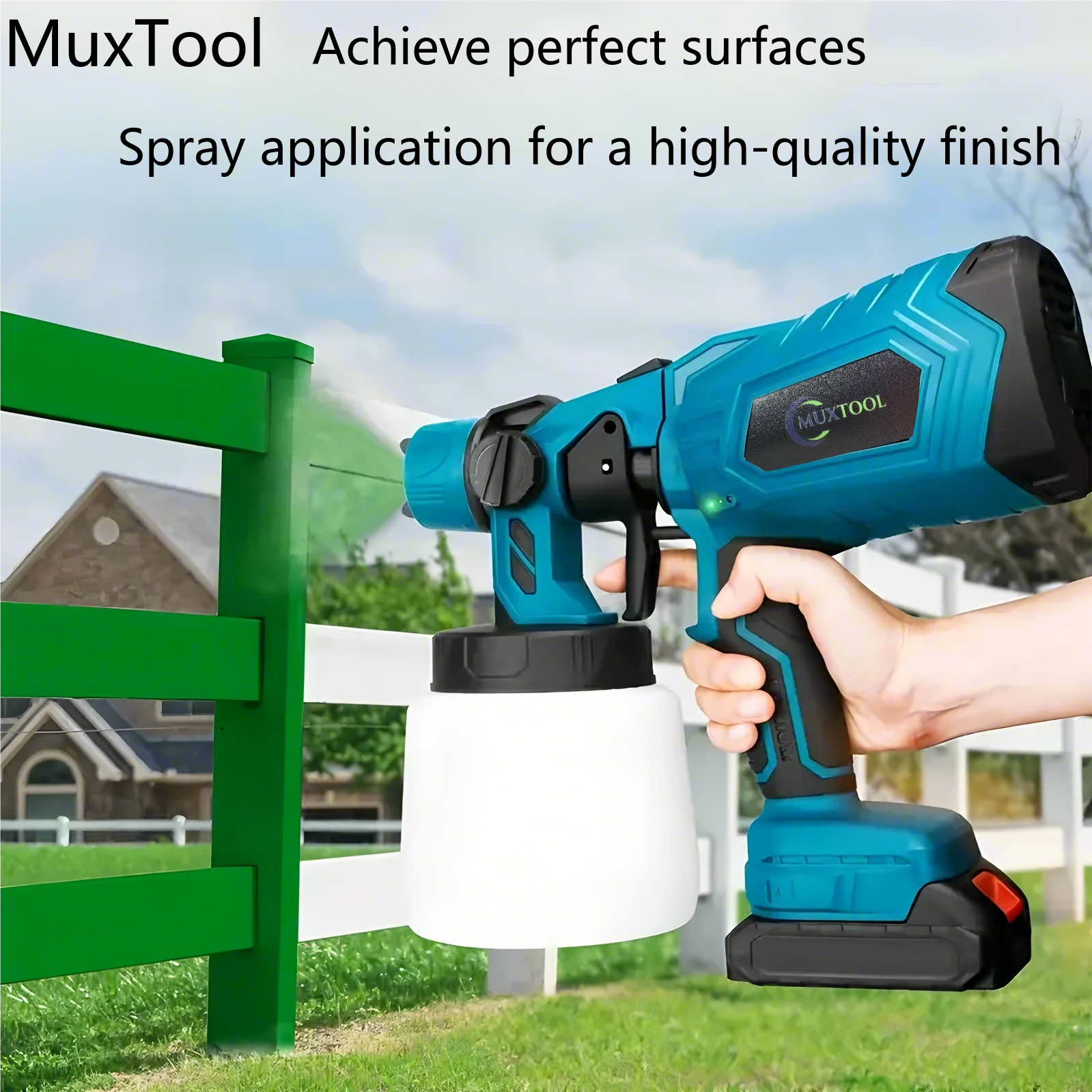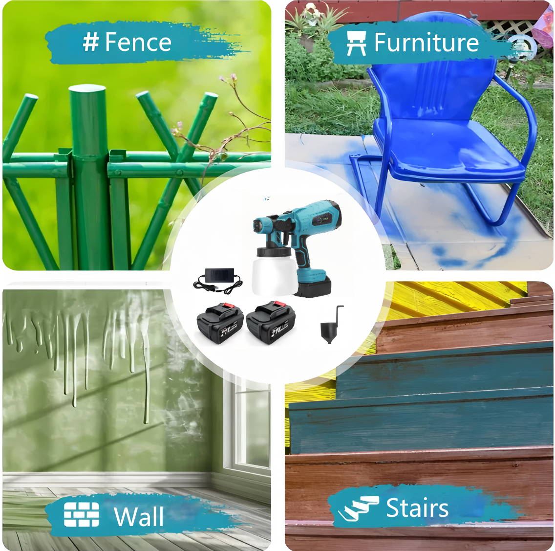 Cordless paint gun with 2 batteries, suitable for painting houses, furniture and interior home furnishings.